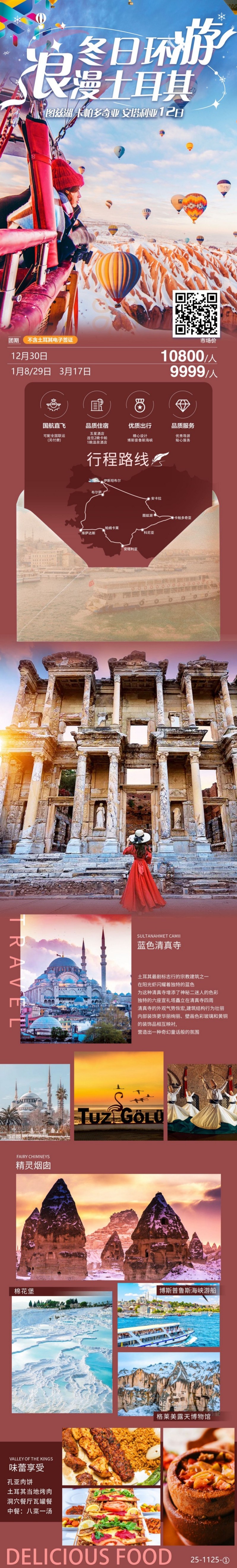 【五大世界文化遗产震撼体验】漫游“棉花堡垒”棉花堡的钙化梯田,在千年温泉中泡浴;飞跃“外星地貌”卡帕多奇亚格莱梅露天博物馆,于清晨热气球上俯瞰精灵烟囱的壮丽日出;站立于以弗所古城的塞尔苏斯图书馆前,感受古罗马的繁华;步入伊斯坦布尔的历史街区,聆听拜占庭与奥斯曼帝国的千年回响。漫步“奥斯曼古镇”库马利克兹克的卵石巷弄,沉醉于木筋墙间的斑驳光影;闲坐百年老宅的庭院,品味土耳其乡村的淳朴与宁静。