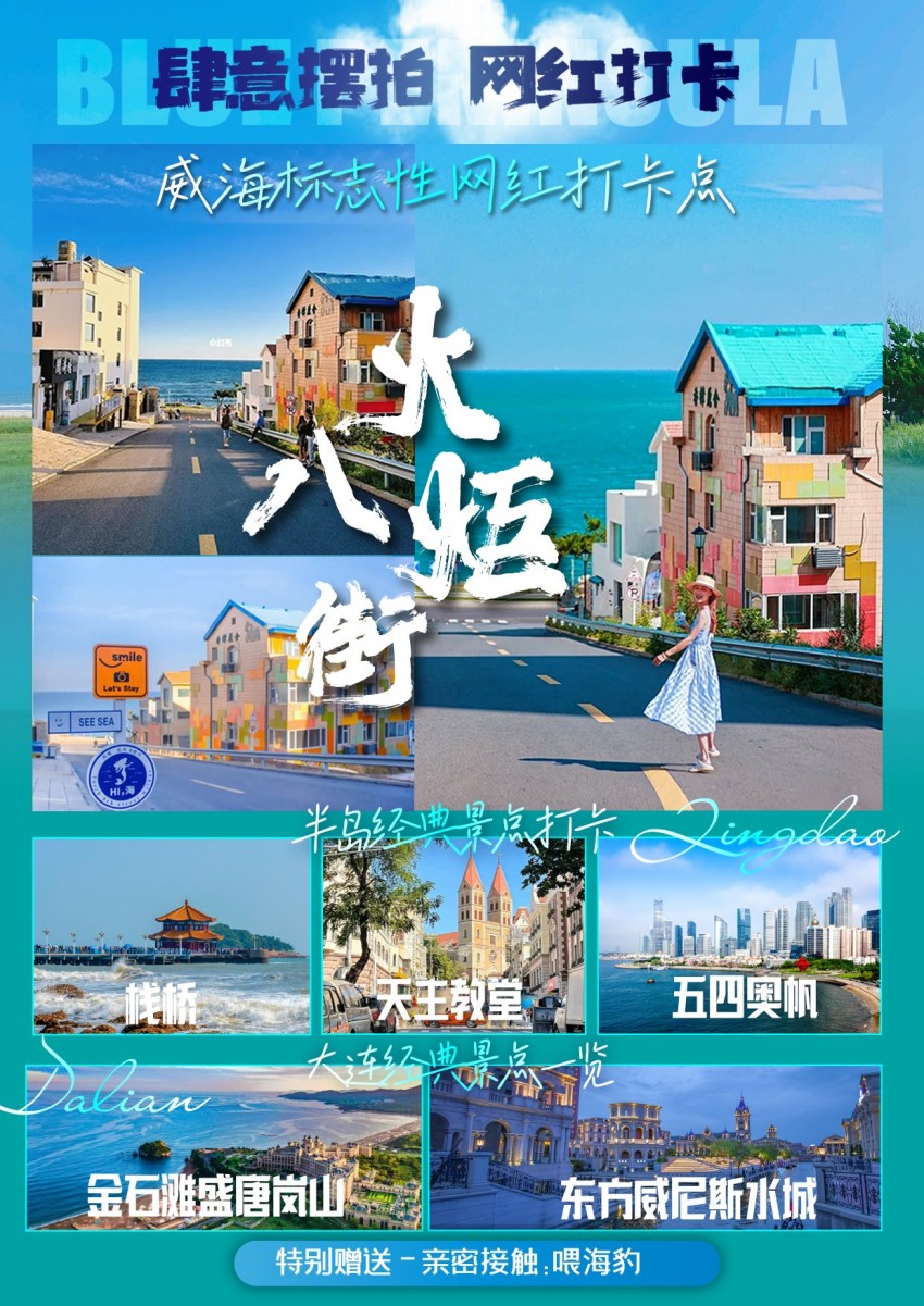 暑假青岛旅游景点|假期旅游景点 青岛、荣成、威海、烟台、蓬莱、大连六日游w