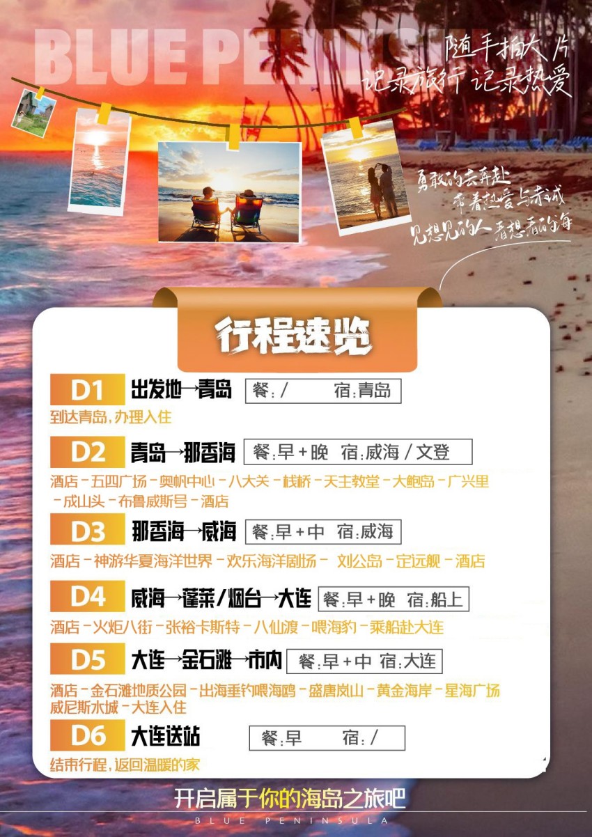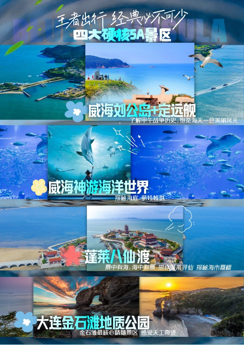尊享海岸】青岛、荣成、威海、烟台、蓬莱大连六日游