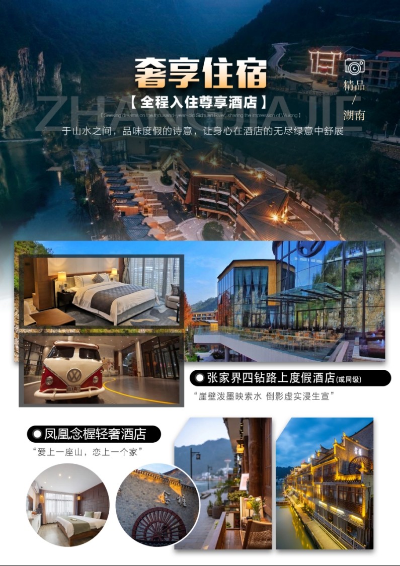 ● 酒店安排:奢享住宿张家界升级携程四钻路上度假酒店或同级+ 凤凰入住念楃轻奢酒店让您感觉不一样的旅游体验‘新婚夫妻,全程安排最少2晚温馨浪漫大床房!需提前告知。
