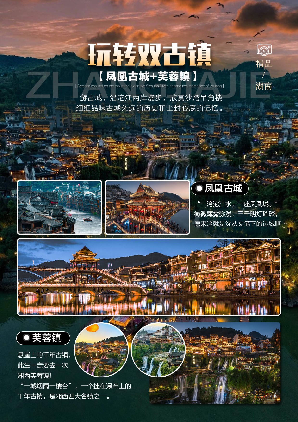 天门山森林公园/ 芙蓉镇 /湘西苗寨/ 凤凰古城 / 张家界千古情 双飞六日游