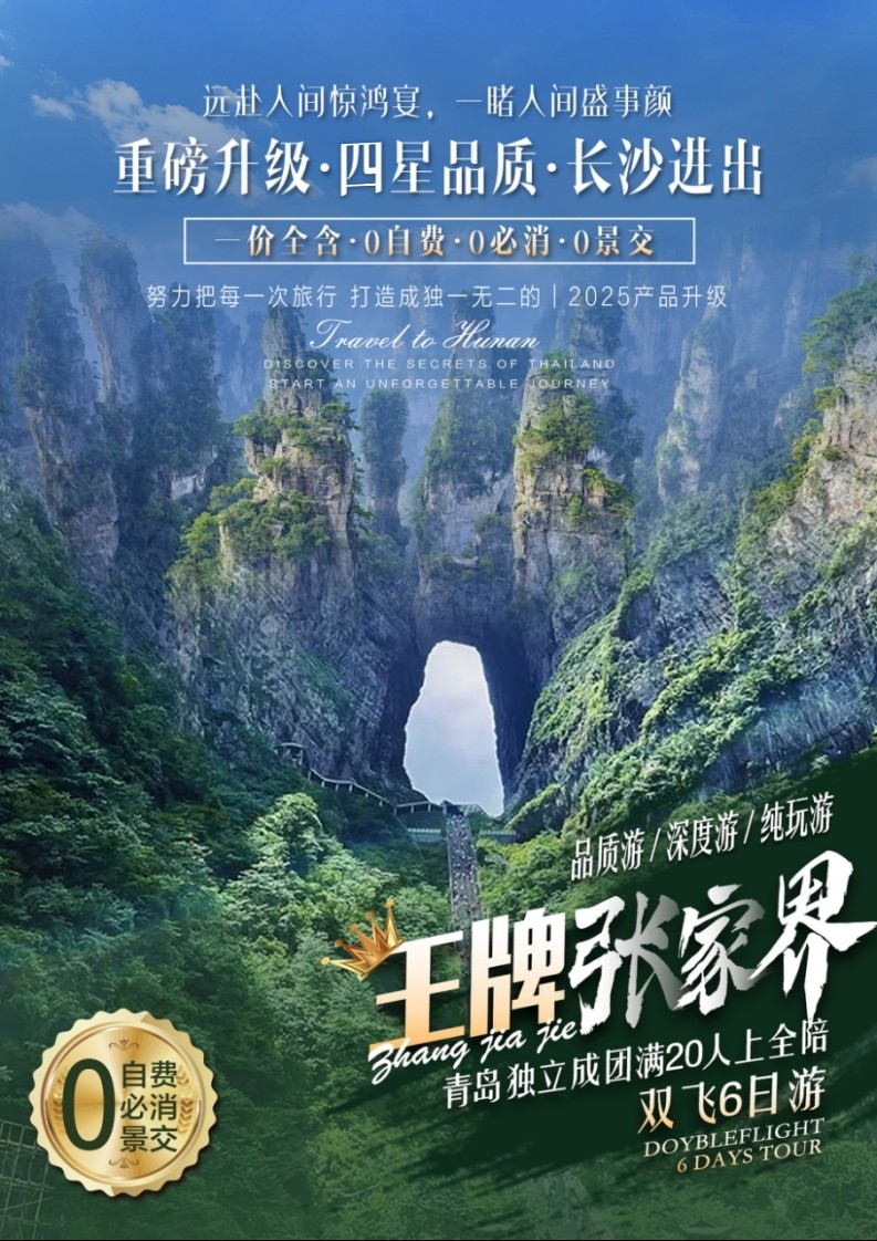 青岛旅行团|青岛旅行社电话 张家界千古情韶山毛泽东故居天门山 双飞六日游w