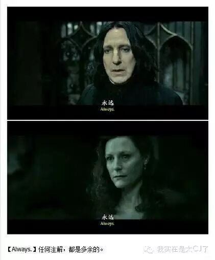 把处于无间道的斯内普的挣扎痛苦表现得淋漓尽致的他,对哈利母亲莉莉的爱,更是感人至深。一句简单的“always”更是成为经典爱情语录。