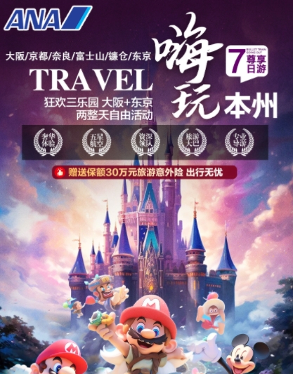 推荐行程 【迪士尼乐园】(门票境外自理)位于日本东京都以东的千叶县浦安市舞滨,是由美国迪士尼公司和日本梓设计公司合作建造的。被誉为亚洲第一游乐园的东京迪士尼乐园,依照美国迪士尼乐园而修建,主题乐园面积为四十六公顷。东京迪士尼乐园主要分为世界市集、探险乐园、西部乐园、动物天地、梦幻乐园、卡通城及明日乐园这七个园区,园内的舞台以及广场上定时会有各种各样的游行活动。乐园在保持了美国迪士尼乐园的正宗风格的同时,加入了巨量日本的特色,例如美食、表演等。 备注:出行航班会根据航司要求做临时调整,避免产生门票和快速通关损失,建议客人购买可以签转门票。 | |